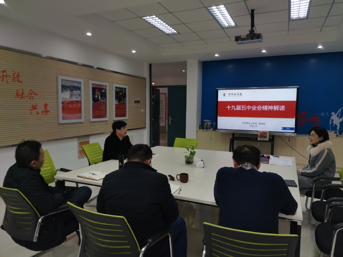 12月9日下午,创新创业学院直属党支部进行党的十九届五中全会精神集中学习和研讨交流。同时邀请马克思主义学院教师程凌绡作党的十九届五中全会精神宣讲报告,全体党员干部参加学习。院长兼党支部书记李菼主持会议。