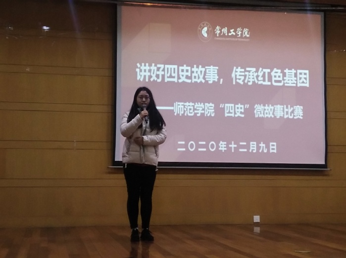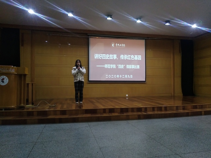 为深入落实《常州工学院关于组织开展“网上重走长征路”暨推动“四史”学习教育工作的实施方案》,推动学好党史、新中国史、改革开放史、社会主义发展史,持续深化爱国主义教育,在全院营造学习“四史”的良好氛围。12月9日下午,师范学院学生会实践部、崇师社、幼学社组织开展了“四史”微故事演讲比赛,院团委副书记王同灿、学前系主任杨晓岚、幼学社指导老师陈蓓、俞雪琴老师担任比赛评委,50余名学生观摩了比赛。