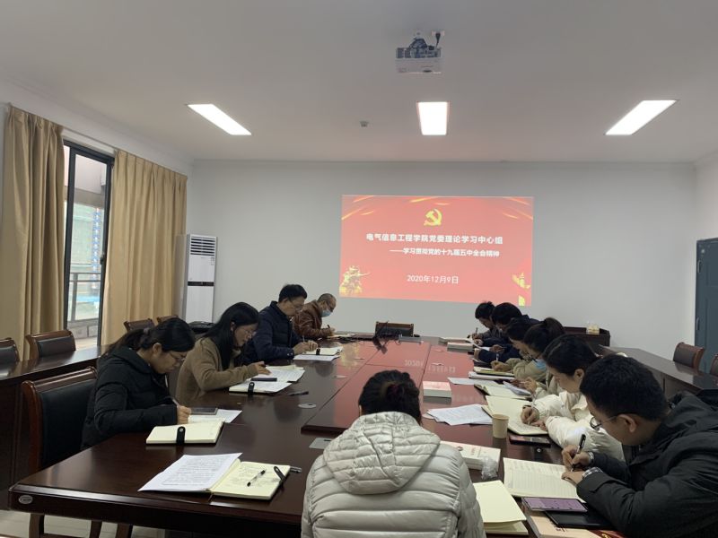 12月9日下午,电气信息工程学院学院党委理论学习中心组开展“学习贯彻党的十九届五中全会精神”专题学习,中心组全体成员(扩大)参加学习。会议由院党委书记李俊生主持。
