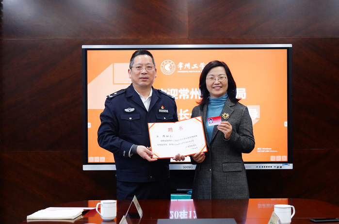 座谈会上,金继英受省公安厅委托,为汪群颁发了“江苏省公安厅第五届党风政风警风监督员”聘书。汪群介绍了我校办学基本情况,对常州市公安局长期以来对我校办学工作的支持和在校园安全稳定工作方面给予的指导表示感谢。作为省公安厅党风政风警风监督员,汪群对常州市公安局在平安常州建设方面取得的成绩表示肯定,并就公安系统如何融入智慧城市建设提出建议。
