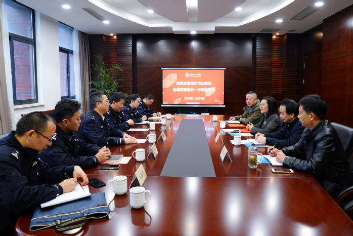 金继英对我校安全稳定工作给予充分肯定,介绍了常州市公安局2020年疫情防控、治理创新、平安建设、警务改革等方面的工作情况,认真听取关于平安常州、平安校园建设方面的意见建议。他表示,公安部门将进一步加强与学校的联系,发挥好校园警务室的桥梁作用,共同做好校园及周边综合治理工作,维护学校安全稳定。