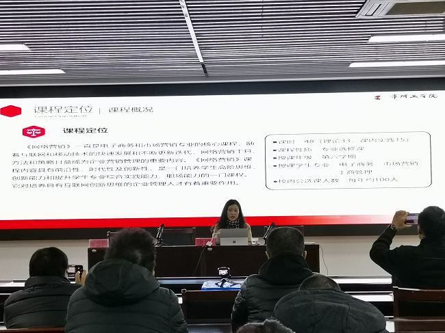 唐纯以《网络营销》金课建设为例,从教学设计入手,深入浅出地分享了如何运用问题驱动、项目驱动、多元评价等方式,有效进行线上线下教学的有效融合。