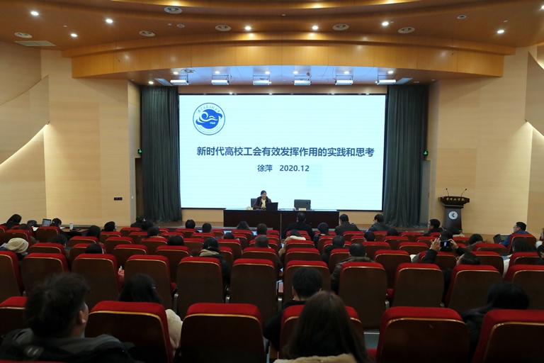 报告会上,徐萍结合高校工会的实际情况,以《新时代高校工会有效发挥作用的实践和思考》为题,从提高政治站位,在学校改革发展稳定大局中找准工会的位置;加强组织建设,建设一支乐于奉献、充满活力的工会干部队伍;建设网络平台,为广大教职工提供精准、高效、贴心的服务;激发内生动力,把教职工凝聚成温馨和谐奋发有为的一家人;讲究工作艺术,调动各方面的积极性支持配合工会开展工作等五个方面进行了详细的讲解,明确了工会工作需要围绕大局、创新理念和方式方法,贴近教职工的需求,建设成为教职工温馨之家。