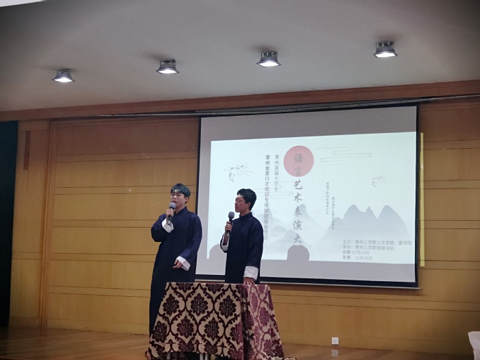 12月26日,由人文学院和图书馆合办的首届大学生语言艺术表演大赛举行决赛。新浪常州网对本次比赛作活动报道。