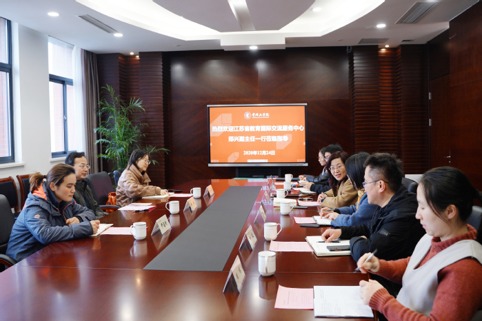 12月24日,江苏省教育国际交流服务中心副主任郑兴、来华留学部部长助理张莹一行三人来我校调研留学生工作。副校长汪群携国际交流学院有关负责人与来宾座谈。