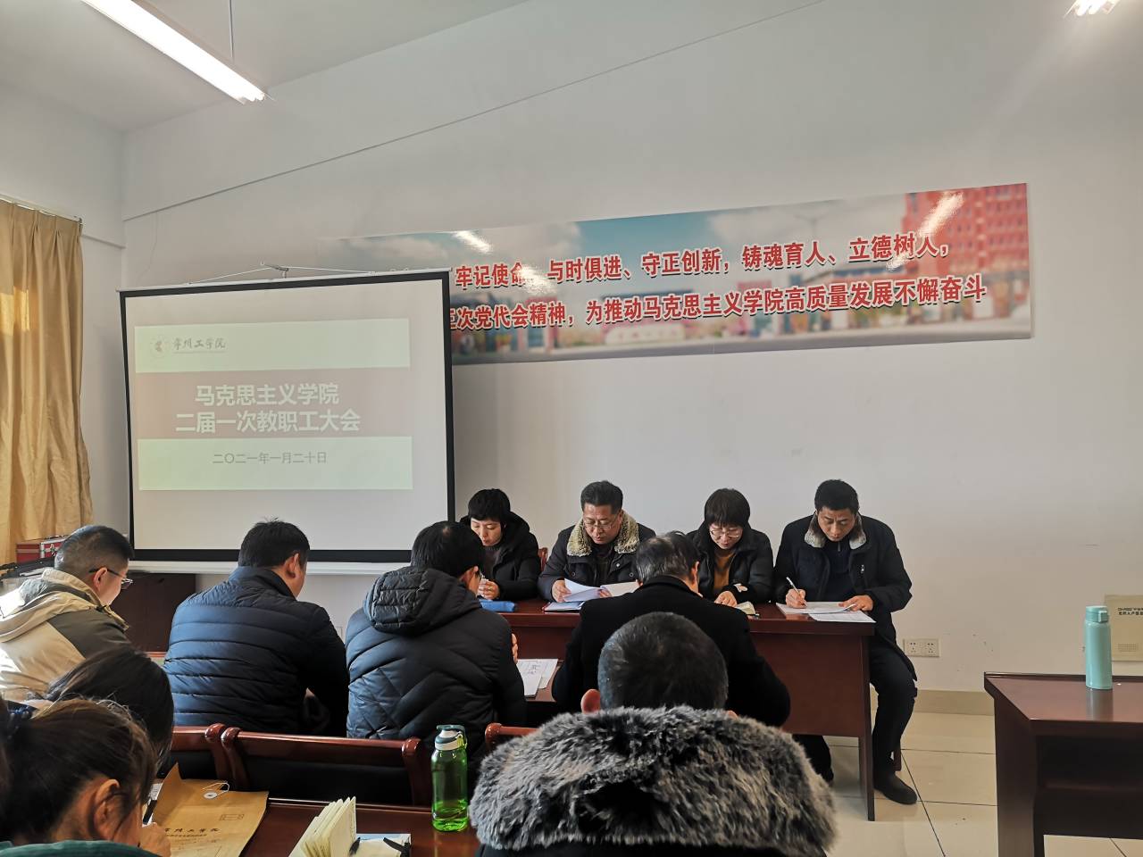 1月20日下午,马克思主义学院第二届一次教职工大会在瑶光楼C503会议室召开,审议通过了《马克思主义学院2020年度考核分配方案》。大会由校党委委员、马克思主义学院党总支书记、院长熊焱生主持。