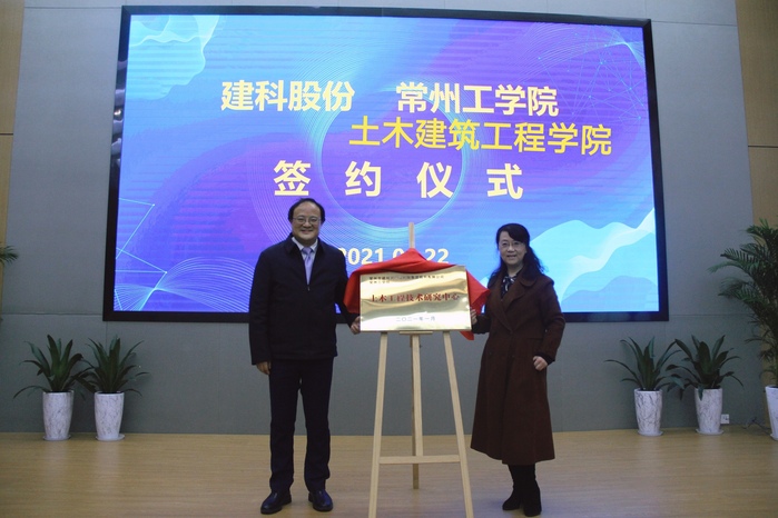 钱红萍、杨江金为双方共建的“土木工程技术研究中心”揭牌。
