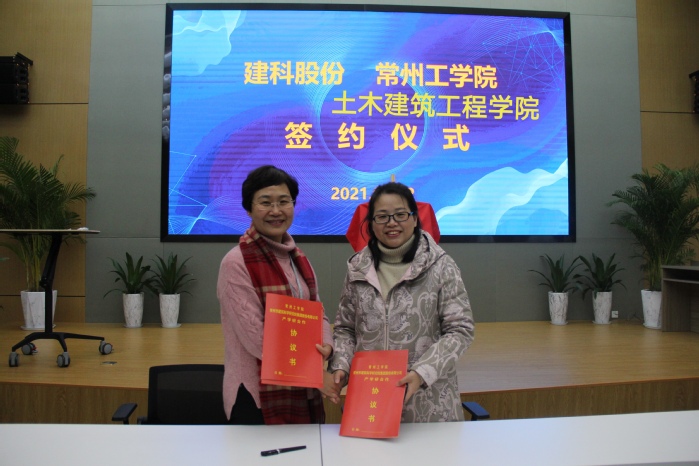 朱建群、张菁燕代表双方签署《常州工学院、常州建科院集团产学研合作协议》,预示双方将在结构工程、建筑材料、绿建节能、岩土工程、桥梁与隧道工程等学科领域加强交流学习、优势互补,共同提升社会服务能力。