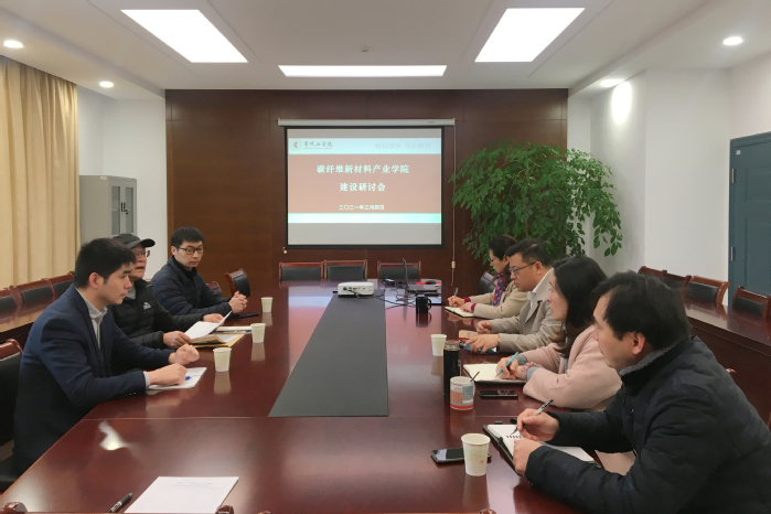会上,双方就碳纤维新材料产业学院建设和人才培养等方面工作进行了交流,重点讨论了产业学院楼层布局规划、实验室生产线设计、仪器设备采购、配电、排污等建设方案,并进一步明确项目实施的定位要求和下阶段主要工作。