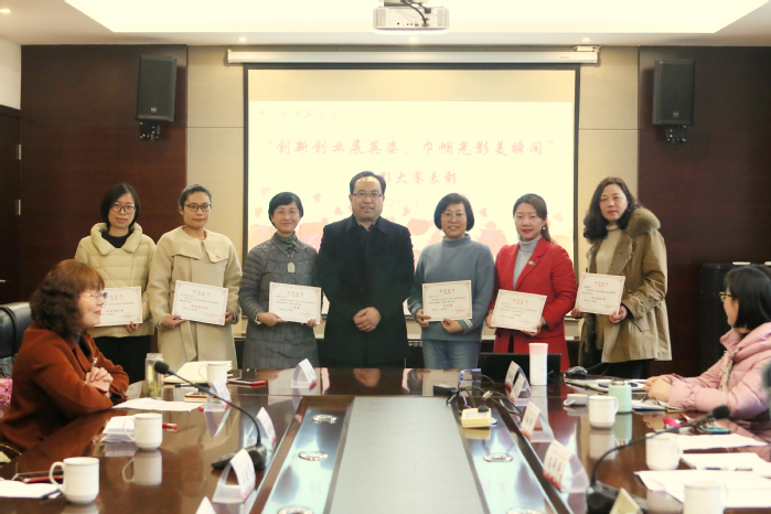 会上,校工会副主席冯平平宣读了《关于命名2020年度常州市三八红旗手(集体)的决定》《关于公布“创新创业展英姿、巾帼光影美瞬间”摄影大赛结果的通知》。现场举行了表彰仪式。