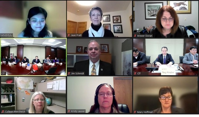 会上,汤正华介绍了我校办学近况和国际化人才培养所取得的成绩,回顾了我校《中美人才培养计划》121项目的发展历程,对美方在疫情冲击下推进项目顺利运行所作的工作表示感谢。他指出,两校在国际教育对国家、对学生的重要性方面有着共同的理念,本次签约进一步增进了了解,期待双方在人才培养、科学研究、师生交流、中美省州人文交流等方面开展更加广泛的合作,为国际化人才培养贡献力量。