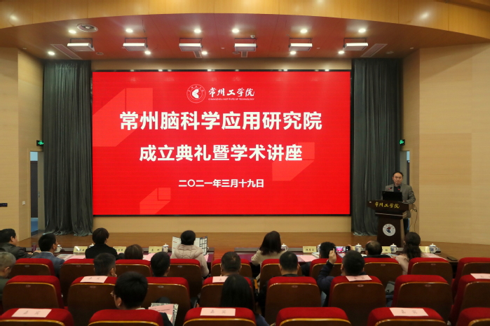 万物复苏春华至,聚力发展正当时。为贯彻实施国家脑科学计划重大战略任务,推动脑科学计划实施进程,3月19日下午,常州脑科学应用研究院(以下简称“研究院”)成立典礼暨学术讲座在我校举行。光明日报社《教育家》主编王湘蓉、美国BrainCo公司董事长韩璧丞、常州市未成年成长指导中心书记莫晔、常州润杰教育科技科技有限公司董事长芮彩琴、常州晋陵科技发展咨询有限公司董事长徐东云,以及我校副校长汪群、原校长李文虎、社科处处长何虹、师范学院党委书记肖华出席大会,并为研究院揭牌。我校附属学校及基地学校领导和老师、师范学院师生代表约140余人参会。师范学院院长王瑛主持典礼。