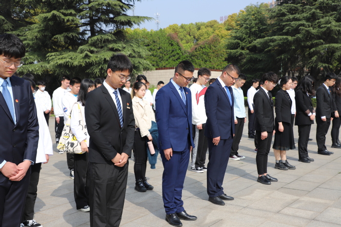 在烈士纪念碑前,校学生会主席团成员向革命烈士敬献鲜花。全体人员列队集合,默哀缅怀,表达对先烈的深切哀思和崇高敬意。校学生会执行主席洪赟带领全体团员庄严宣誓,表达了团员青年牢记先烈遗愿,履行团员义务,勤奋学习,为祖国建设和发展奉献青春热血和力量的决心。