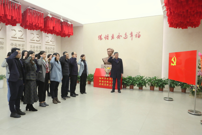 缅怀革命先烈,赓续红色精神。座谈会后,王成斌、曹雨平、汪群及全体党员先后来到我校“三杰”群雕广场、张太雷纪念馆,学习“常州三杰”的光辉事迹和英雄壮举。在张太雷纪念馆,全体党员在张太雷半身塑像前,庄严地重温入党誓词。通过看一张张图片、一件件实物,听一段段讲解、一句句誓言,感受张太雷短暂而壮丽的一生,感受共产党人为中国人民谋幸福、为中华民族谋复兴的伟大初心,再一次获得精神洗礼和心灵震撼,进一步增强了中国特色社会主义道路自信、理论自信、制度自信、文化自信,进一步坚定了理想信念。