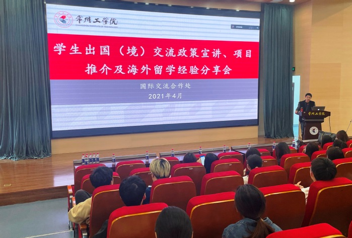 副处长金中坤主持。他介绍了国际交流合作处的职能、学校近年来国际交流的总体概况、学生出国(境)交流规模、项目类型,以及学校相应的学分认定、奖学金等支持政策。