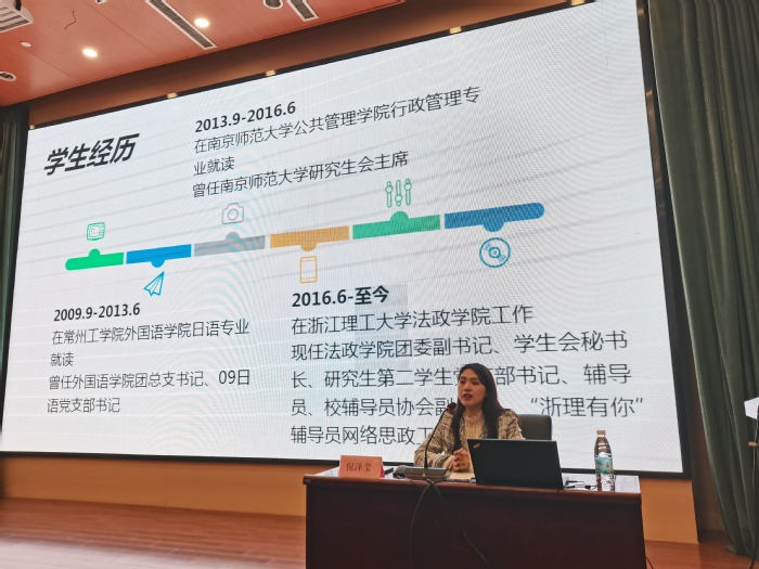 倪泽莹,浙江省辅导员技能大赛一等奖获得者、浙江理工大学优秀辅导员、教育部第一批高校思想政治工作精品项目骨干成员。