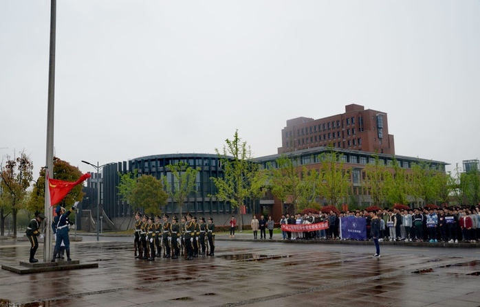 微风阵阵,细雨绵绵。4月12日上午7点,外国语学院举行升国旗仪式。院党委书记刘一鸣作国旗下讲话。院党委副书记俞贤辉主持仪式。全体学生党员、2020级全体学生参加。