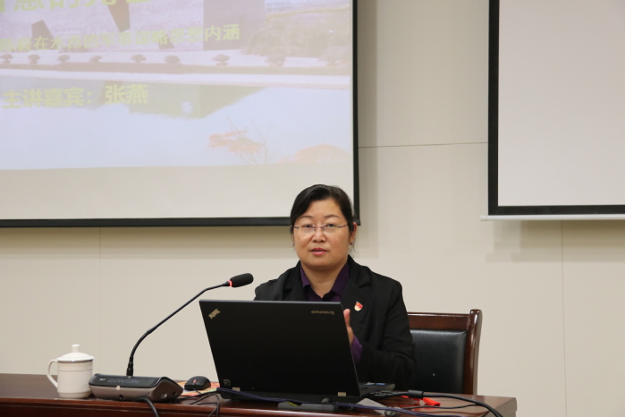 张燕以《智慧的光芒——全面解读陈毅在水西的军事谋略思想内涵》为题,介绍了陈毅同志的生平,用生动的语言、图片及事例,从铁军组建、进驻水西;弯弓射日、统战楷模;东进北上、突出重围等三个方面详细解读了陈毅同志在水西的历史事迹。