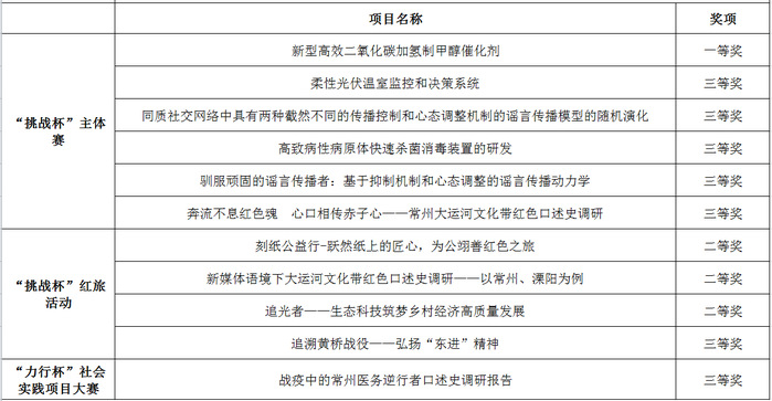 5月14日—15日,第十七届“挑战杯”大学生课外学术科技作品竞赛江苏省选拔赛决赛在南京中医药大学举办。作为全省大学生课外学术科技创新的最高级别赛事,共吸引了全省17万名师生全情参与,706个项目闯入省赛,373个项目在省级决赛巅峰对决。我校在主体赛中获一等奖1项、三等奖5项,在“挑战杯”红色专项活动中获得二等奖3项、三等奖1项,“力行杯”社会实践项目大赛获三等奖1项。