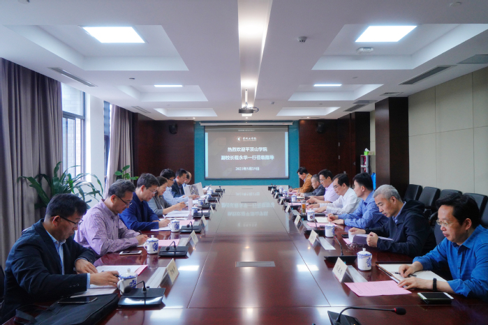 5月19日上午,平顶山学院副校长程永华一行来校交流访问。副校长朱海山携党委/院长办公室、发展规划办公室、教务处、科研处、资产管理处和电气信息工程学院负责人与来宾交流。