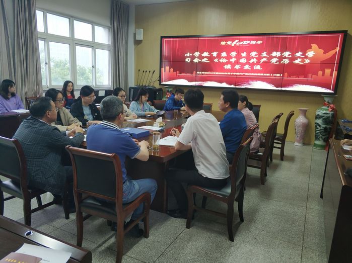 小学教育系学生党支部开展习近平同志《论中国共产党历史》主题读书分享会。校党史学习教育督导组成员、原校党委副书记、纪委书记陈志伟、离退休工作办公室主任兼党工委书记陈勇、纪委办公室专职纪检员何松,以及该院党委书记肖华、副书记周嘉禾、副院长张建波列席会议。