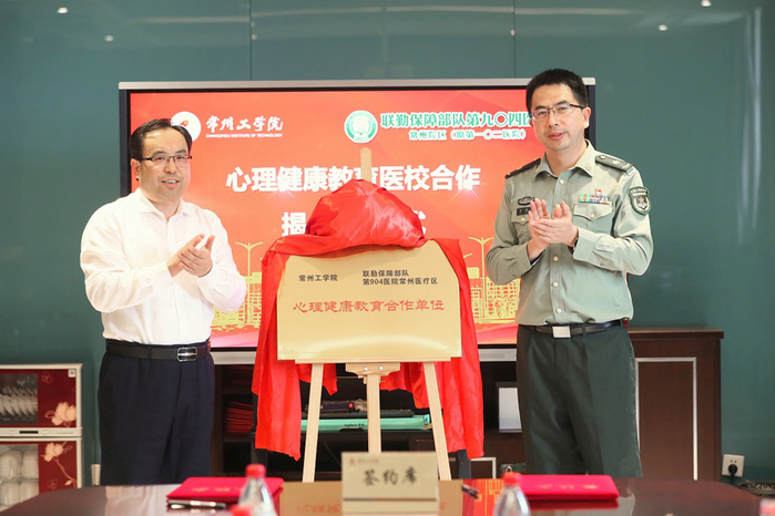 为拓展心理健康服务,探索大学生心理健康教育工作新模式,5月25日,我校与联勤保障部队第904医院常州医疗区举行共建活动。校党委副书记王传金与该医疗区党委书记林杰签署共建协议,并为“心理健康教育合作单位”揭牌。王传金还为第一批受聘“心理专家”颁发聘书。该医疗区副主任汪莉、青少年儿童心理中心主任程祺等,我校学生工作部(处)相关人员参加共建仪式,共建仪式由学生工作部(处)处长吕莹璐主持。