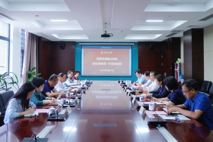 5月27日,黄山学院校长李铁范一行来校调研。校长汤正华携人事处、教务处、科研处、国际交流合作处、航空与机械工程学院相关负责人与来宾交流。