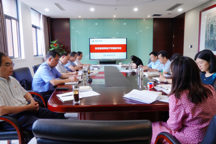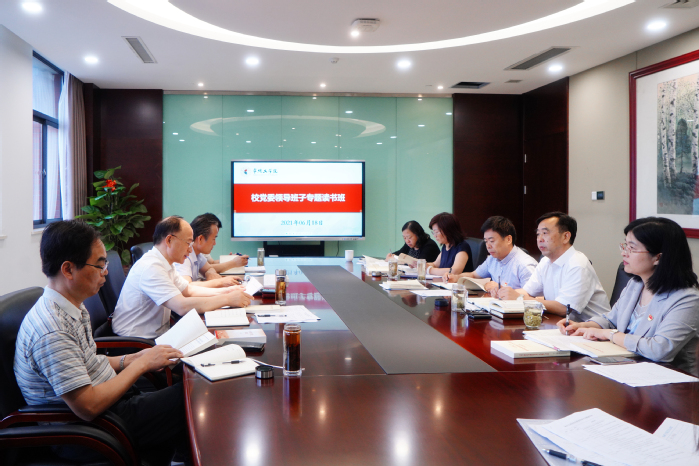 6月18日至19日,根据党史学习教育实施方案总体安排,校党委领导班子举办为期2天的专题读书班。深入学习习近平《论中国共产党历史》《毛泽东、邓小平、江泽民、胡锦涛关于中国共产党历史论述摘编》《习近平新时代中国特色社会主义思想学习问答》《中国共产党简史》等四本党史学习教育权威读本。校党委书记曹雨平主持,校党委领导班子全体成员参加学习。