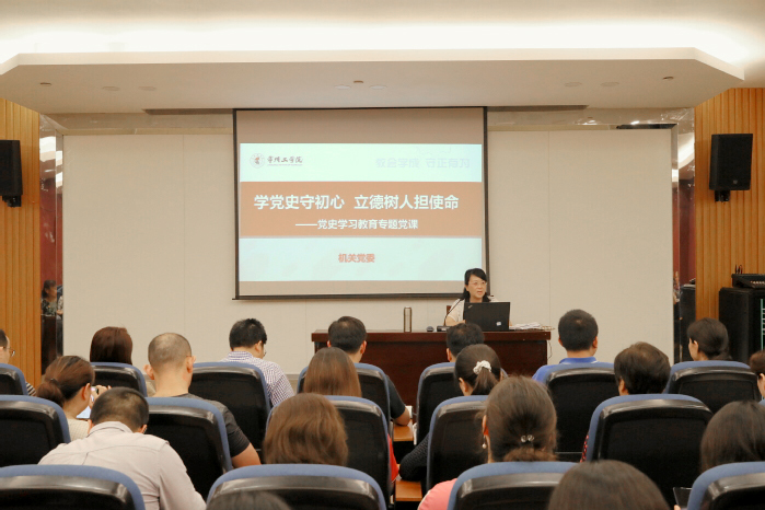 6月17日,机关党委书记钱红萍为机关党委全体科层干部及教职员工党员讲授党史学习教育专题党课。