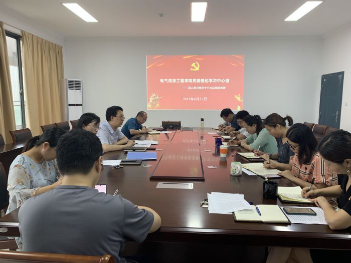 又讯 6月17日,电气信息工程学院党委理论学习中心组(扩大)举行集中学习研讨,专题学习党的十八大以来的历史、习近平总书记重要文章《用好红色资源,传承好红色基因,把红色江山世世代代传下去》、习近平总书记在两院院士大会、中国科协第十次全国代表大会上的讲话精神、习近平总书记给《文史哲》编辑部全体编辑人员回信精神和习近平总书记给江苏省淮安市新安小学少先队员的回信精神。