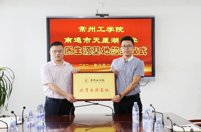 6月21日至22日,副校长张兵带领电气信息工程学院院长毛国勇、党委副书记高静等赴南通进行招生宣传,与南通市天星湖中学、江苏省海门实验学校、江苏省包场高级中学、海门市第一中学、海门市证大中学、启东市第一中学、启东市汇龙中学、如东县马塘中学等8所中学签约“优秀生源基地”并授牌。