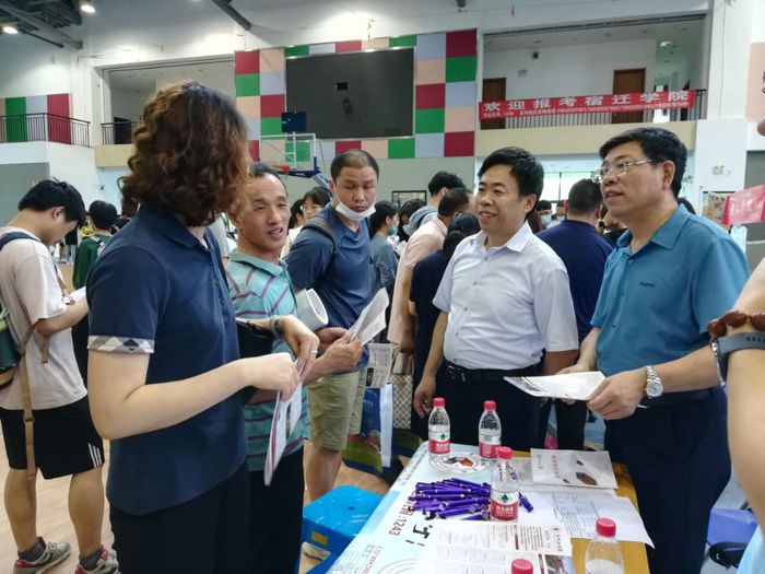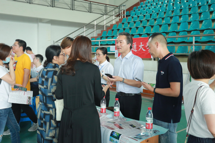 汤正华在常熟市中学2021年高考志愿填报说明会上进行招生宣讲,并与考生家长交流互动,耐心细致地向考生及家长介绍学校建设、师资、专业特色和就业方向等情况,鼓励广大学子积极选择报考我校。