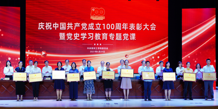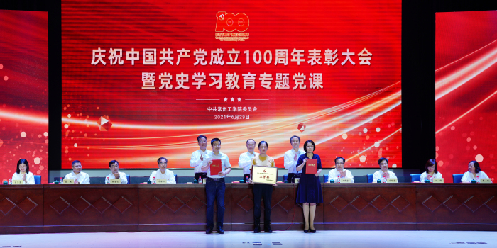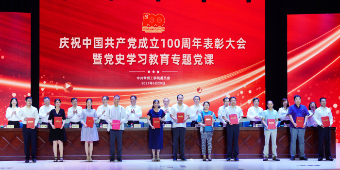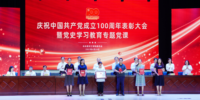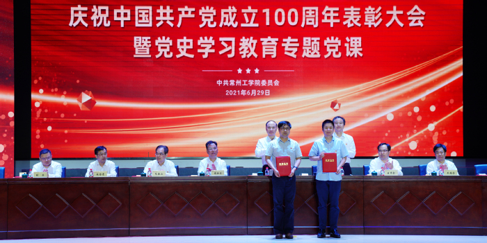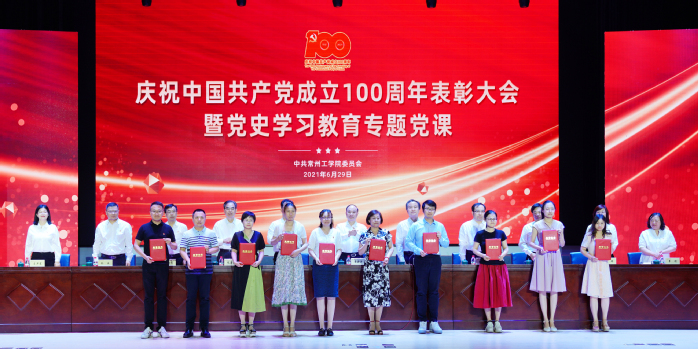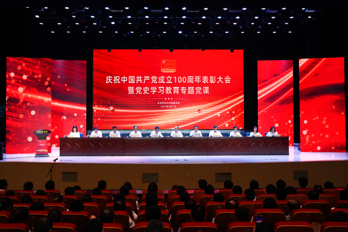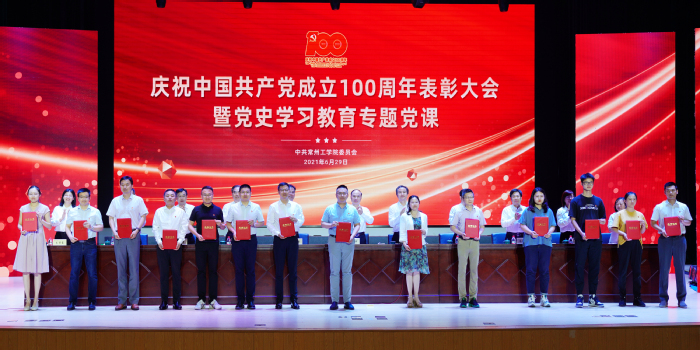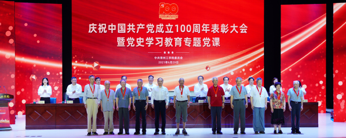 百年历程波澜壮阔,百年成就催人奋进。6月29日下午,我校隆重举行庆祝中国共产党成立100周年表彰大会暨党史学习教育专题党课。重温党的辉煌历程,为老党员代表颁发“光荣在党50年”纪念章,表彰先进典型,聆听专题党课,深入学习贯彻习近平新时代中国特色社会主义思想,深刻领会习近平总书记在党史学习教育动员大会上的重要讲话精神,从党的百年奋斗历程中汲取智慧和力量,激励广大党员立德树人担使命,为开启“十四五”发展新征程、奋力推进一流应用技术大学建设注入强劲动力。