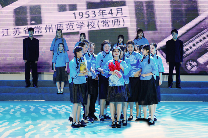 第一篇章中,音诗画《粹化女校》情景式还原了我校前身粹化女学的建设发展情况,深刻再现了百年师范“坚忍诚勇,立己达人”的精神,引人回望来路,不忘初心,继续前行。音诗画《三杰 最是那一抹红》截取“常州三杰”短暂而又光辉的生命片段、情感点滴为素材,字字铿锵有力、句句豪迈坚毅,淋漓展现三位革命青年为谋人民之幸福而舍生忘死的革命精神。芭蕾舞剧《红色娘子军选段》将军事训练动作与芭蕾足尖技巧有机结合,轻快明亮、生气勃勃,展现了女战士的飒爽英姿和军民团结一家亲的深厚情谊。舞蹈《东方红》在陕北特色十足的歌唱背景下,以富有力量的动作舞出了人民群众对伟大领袖毛泽东及其领导的中国共产党的深情。