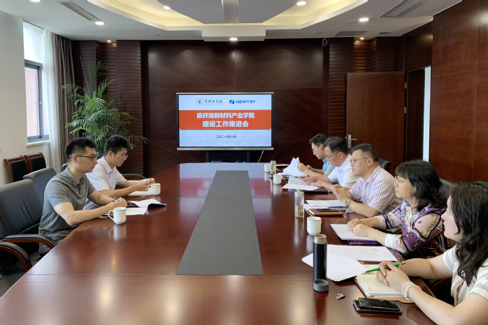 6月30日上午,副校长张兵主持召开碳纤维新材料产业学院建设推进会。校党委副书记、副校长周全法、教务处、科研处、化工与材料学院相关人员、新创碳谷控股达姆斯检测中心许经纬等参加会议。