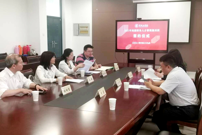 6月29日下午,我校与江苏财鑫教育培训中心举行2021年高级财务人才暑期集训班合作协议签约仪式。副校长汪群,经济与管理学院党委书记张巧凤、院长钱明霞、副院长李春平;江苏财鑫教育培训中心董事、总经理刘兴勇,董事、副总经理朱永娟,总经理助理、教务部部长李莎,市场总监于嘉参加签约仪式。