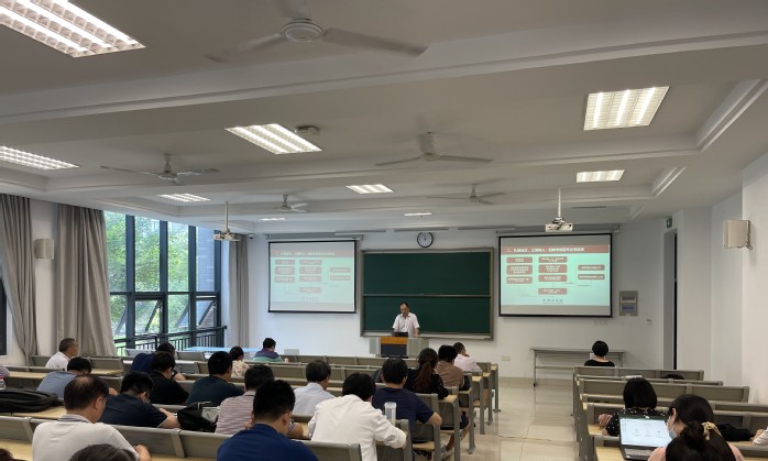 6月30日,土木建筑工程学院党委书记周泓为全体教职员工讲专题党课。