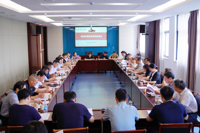 师德专题教育贯穿全年,是学校今年的重点工作,朱海山要求各二级单位领导一定要提高认识、加强教育、注重养成、树立典型、明确责任,把师德师风建设贯穿全年,结合党史学习教育扎实开展师德专题教育。