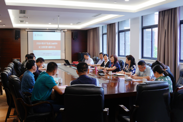 6月30日,我校举行庆祝中国共产党成立100周年征文颁奖暨专题研讨会。副校长汪群、社科处全体成员和征文作者参加研讨会。邀请校党委常委、党委宣传部部长王萍霞、人文学院党委书记吴健、外国语学院党委书记刘一鸣担任点评专家。会议由社科处副处长朱亮亮主持。