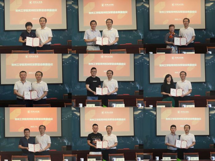 会议选举产生了常州校友会第二届理事会。何永成、蒋建名、沈波当选为名誉会长,汪永健、陈向群、许建俊当选为顾问,王秋平当选为会长,许晓音、沈文虎、郑欣、路建卫、鞠文庆、於爱民、蔡俊杰当选为副会长,郑家柏当选为秘书长,蒋德牡、曹霞、田闯当选为副秘书长,高双军、江伟、莫永峰、杨建锋、薛超、殷成龙、吴震、郭立山、张鑫、倪刚、王遇顺当选为常务理事。汤正华为常州校友会授牌并颁发聘书。