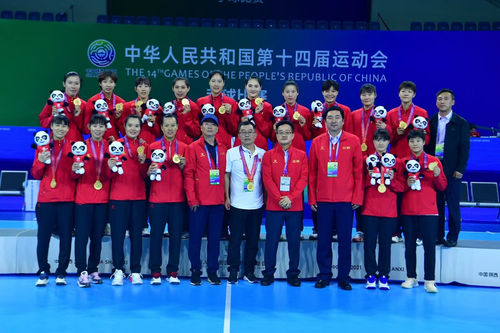 全运会女子手球比赛于8月31日拉开大幕,江苏女手和陕西队、辽宁队、山东队同分在B组,在一波三连胜后,成功晋级淘汰赛,并分别以54.5-23、58.5-27.5击退北京队、陕西队,闯入决赛。