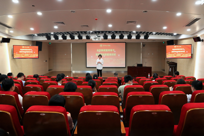 9月16日下午,党委宣传部、党校、“常州三杰”干部学院、社会主义学院联合举办全校新闻宣传骨干暨新媒体联盟培训班。常州电视台资深记者王晶、党委宣传部副部长印富贵、党委宣传部新媒体中心负责人王超分别作专题讲座。各二级单位新闻发布员、新媒体管理员、党委宣传部全体人员共60人聆听。党委宣传部新闻宣传科科长孙悦娟主持培训。