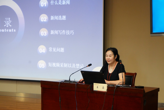 在《多元价值观多媒体时代新闻写作》专题讲座中,王晶从自身的从业经历及感受入手,阐述了“新闻”的概念和特点。她撷取自己主创的诸多新闻作品,以案例讲述的方式详细介绍了新闻选题的来源点、新闻写作技巧,分析了新闻作品中常见的问题、短视频采制的核心要求和禁忌。