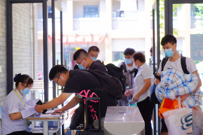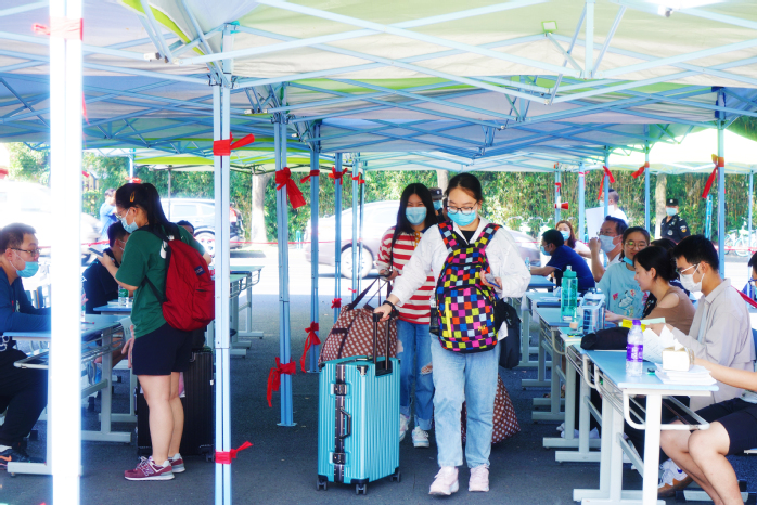 办实事,暖生心。为解决学生返校交通困难和行李搬运问题,学校在新桥地铁站安排2辆大巴,每15分钟一班轮岗接站;在校园内安排3辆大巴专门帮助学生转运行李。“这么热的天,这么多包裹,有车接站、托运行李,太省心省力了,学校的安排很周到。”手提肩扛的学生小赵感动地说。