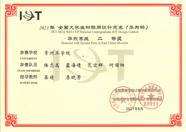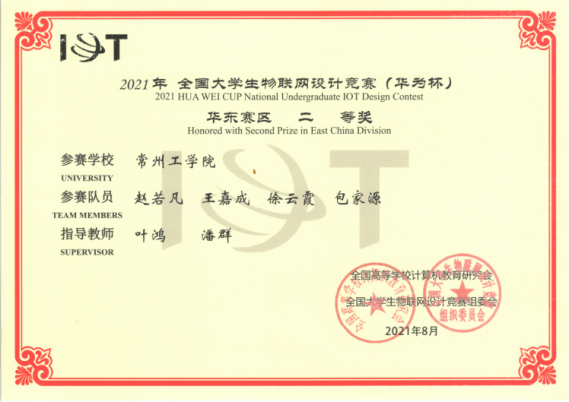 近日,2021年全国大学生物联网设计竞赛华东赛区(华为杯)结果出炉。我校计算机信息工程学院叶鸿、潘群两位老师指导的“iSimple”团队的项目“基于物联网的宿舍用电检测系统”和杲靖、李晓芳两位老师指导“森普”团队的项目“基于物联网的无人值守称重系统”,历经长达2个月的备战,在与众多985、211高校的角逐中脱颖而出,均获二等奖。