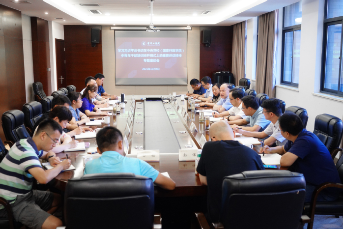 10月4日,我校召开学习习近平总书记在2021年秋季学期中央党校(国家行政学院)中青年干部培训班开班式上的重要讲话精神专题座谈会。校党委书记曹雨平、校党委副书记王传金出席会议。15名年轻干部代表、二级学院“跟班锻炼”人员代表参加座谈。会议由校党委常委、党委组织部/党委统战部部长章瑜主持。