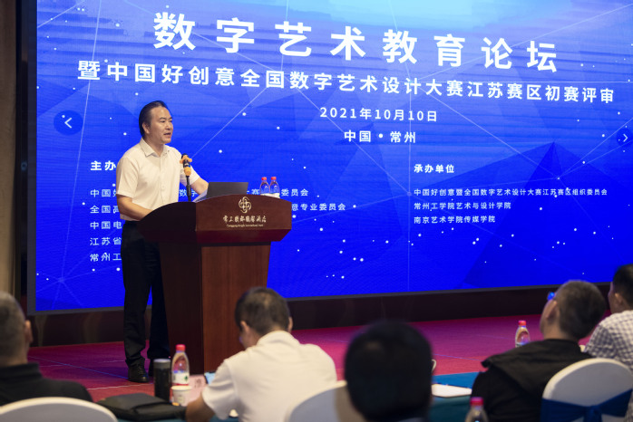 10月9日-11日,数字艺术教育论坛暨中国好创意全国数字艺术设计大赛江苏赛区初赛评审会在我校举行。本次活动由中国好创意暨全国数字艺术设计大赛组织委员会、全国高等院校计算机基础教育研究会数字创意专业委员会、中国电子视像行业协会数字影像创意委员会、江苏省工业设计学会和我校共同主办,中国好创意暨全国数字艺术设计大赛江苏赛区组织委员会、我校艺术与设计学院和南京艺术学院传媒学院共同承办。来自教育部高等学校动画、数字媒体专业教学指导委员会的12位委员、省内20余所高校50余名学者及行业专家莅临活动。围绕“数字艺术教育与行业发展”主题,活动分为开幕式、主论坛、常州工学院数字媒体艺术专业建设发展分论坛、中国好创意全国数字艺术设计大赛江苏赛区初赛评审等环节。