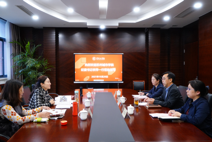 10月20日,苏州城市学院党委常委、纪委书记李萍一行3人来校调研。校纪委书记张金贵携纪委办公室有关人员接待客人并主持座谈会。