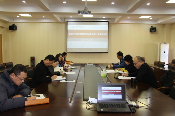 11月24日,继续教育学院党总支举行理论学习中心组2021年第十一次集中学习,深入学习领会党的十九届六中全会精神,联系部门实际开展专题研讨。中心组全体成员参加,院党总支书记、院长金心主持会议。