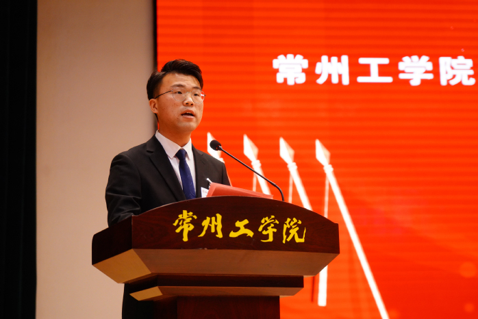 3日下午2点,大会在激昂的国歌声中拉开序幕。兄弟高校学生会代表——江苏理工学院学生会执行主席虞佳杰致辞。他希望未来继续与我校学生会组织加强交流合作,相互学习,更好地为广大同学服务,为学校建设发展作贡献。